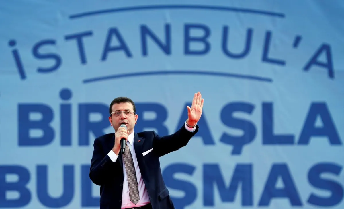 Ekrem Imamoglu addresses his supporters during a rally in Istanbul, Turkey, April 21, 2019. (Reuters)