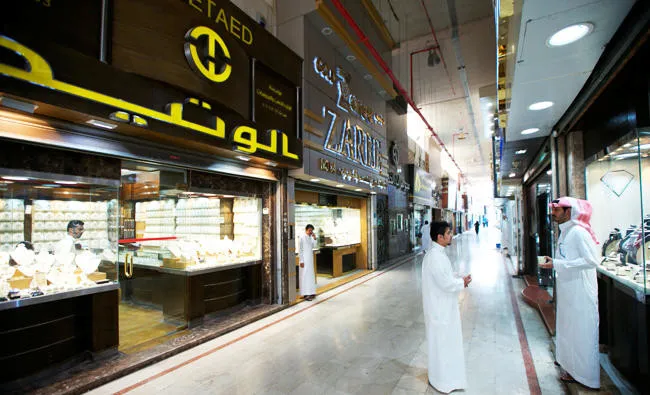 People stand outside jewellery stores in Riyadh, Saudi Arabia, in this November 12, 2017 photo. (REUTERS)