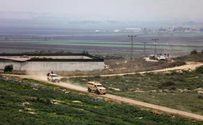 Turkish armored vehicles and Syrian fighters’ pickup trucks drive on the Turkish side of the border in the Reyhanli region of Hatay province in Syria in this February 10, 2018. (AFP)