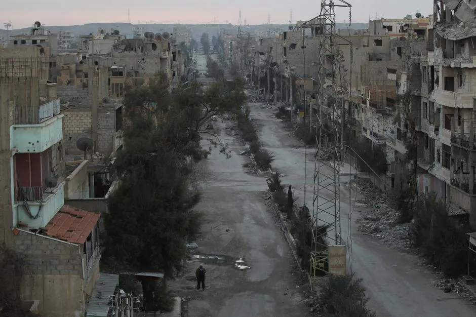 A man walks along a deserted street filled with debris in Deir Ezzor, eastern Syria February 14, 2014. REUTERS/Khalil Ashawi/File Photo