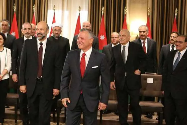 Jordan’s King Abdullah II with Prime Minister Omar al-Razzaz during a swearing-in ceremony of the new cabinet in Amman, Jordan June 14, 2018. (Reuters/Handout)