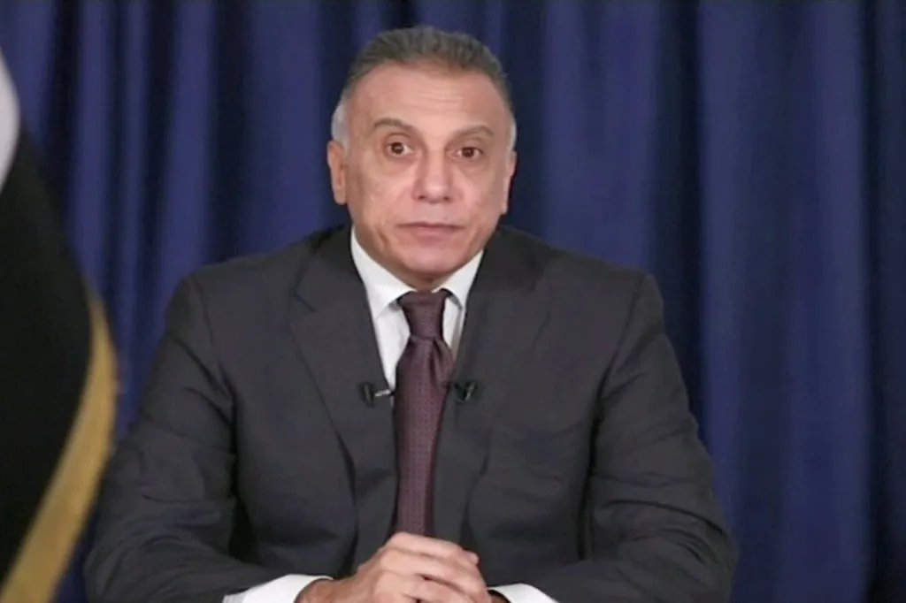 Prime Minister Mustafa al-kadhemi, of Iraq, delivering his first televised address after his nomination in April.Credit...Reuters TV