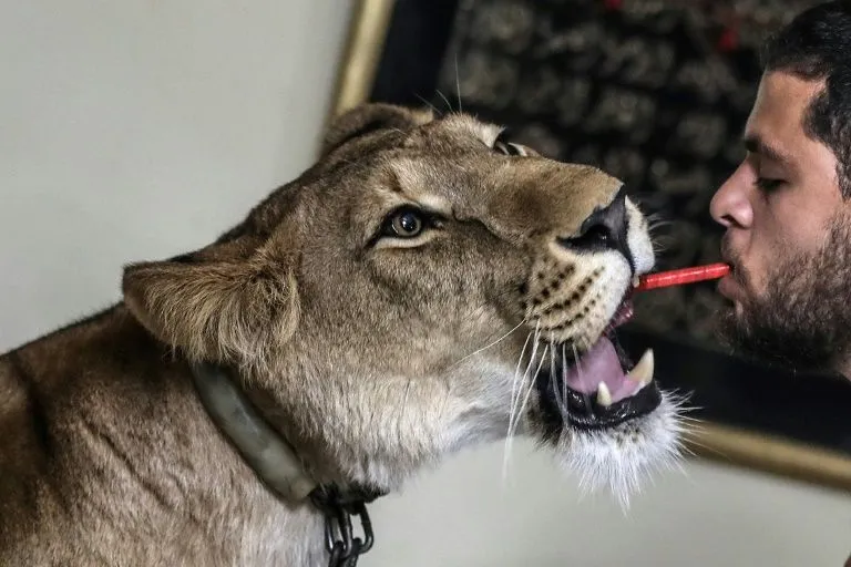 Ashraf has decided to bring the lioness home for a few hours twice a week.