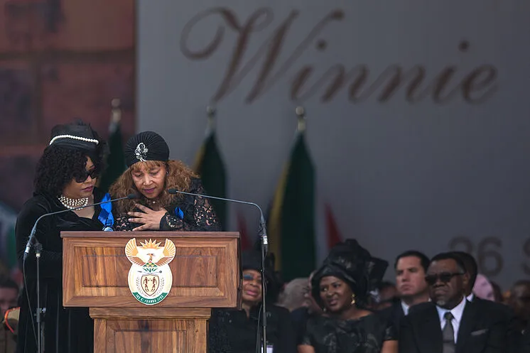Zindzi Mandela, left, and her sister Zenani Mandela-Dlamini, at the funeral of their mother, Winnie Madikizela-Mandela in April 2018 | AFP