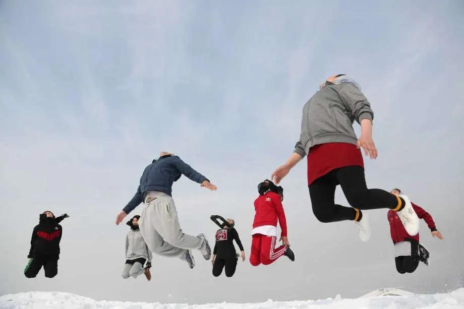 The women in Hussiani's group find strength in their team spirit. They braid each other's hair before training sessions, spar against one another, take turns on the even bars. In winter, they practice their wrestle holds on snow-covered hilltops above Kabul.