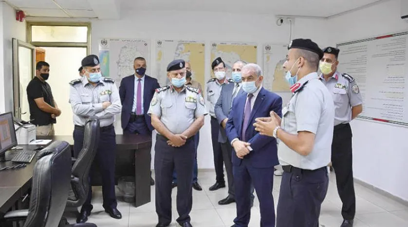 Palestinian Prime Minister Mohammad Shtayyeh on a visit to the Civil Defense office in Ramallah (WAFA)