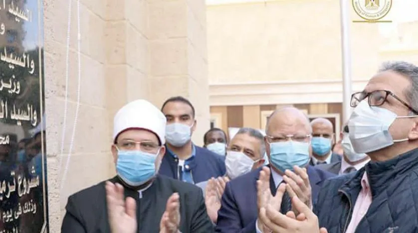 Egyptian ministers of antiquities and tourism and endowments, as well as Cairo governor during the reopening of the Imam al-Shafi’i Mosque after its renovation and maintenance on Friday, November 20, 2020 (Twitter)