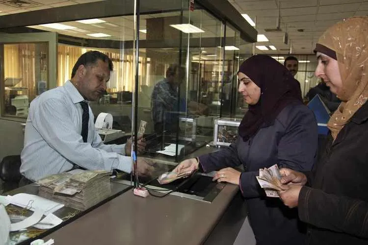 Image used for illustrative purpose. Customers (R) deposit Jordanian dinars at the Jordan Islamic Bank in Amman. REUTERS/Majed Jaber