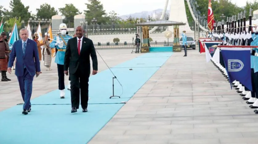 Erdogan received Burhan in an official ceremony at the Presidential Palace in Ankara, where they held bilateral talks, followed by expanded discussions which included the accompanying delegations.