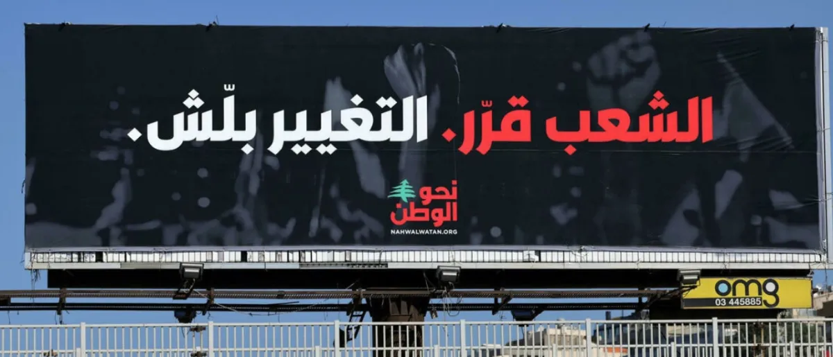 An electoral billboard reading "The people have decided, the change has started" in Dbayeh, east of Lebanon's capital Beirut, ahead of elections next year. AFP
