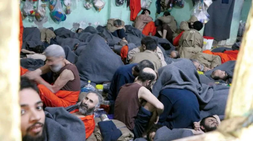 Prisoners accused of belonging to ISIS in Hasakah governorate, northeastern Syria (Asharq Al-Awsat)