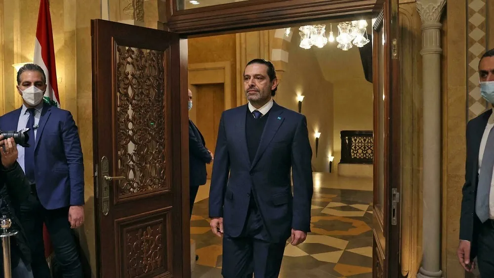 Lebanon's former Prime Minister Saad Hariri arrives for a press conference in the capital Beirut on January 24, 2022. (AFP)