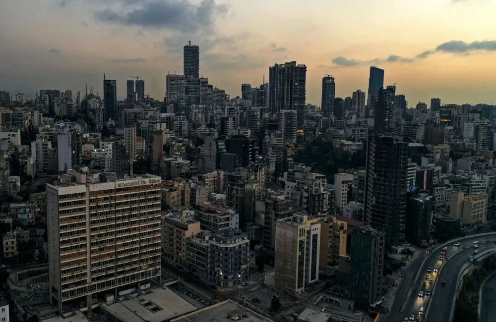 Sunset over the Electricite du Liban building in Beirut during a power outage on October 11, 2021. (AFP)