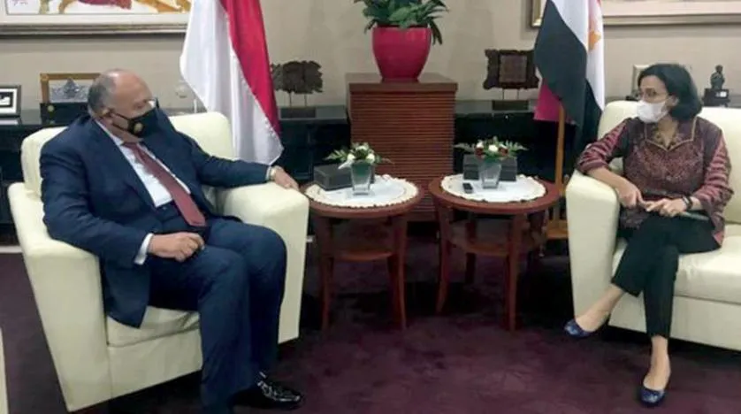 Egyptian Foreign Minister Sameh Shoukry during his meeting with the Indonesian Minister of Finance. (Egyptian Foreign Ministry)