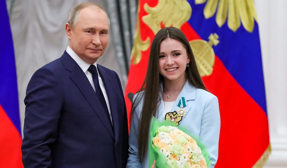 Putin gave Valieva a state award as part of a televised ceremony celebrating Russian medalists and congratulated her on her 16th birthday Tuesday. Valieva said "it’s a big honor for me."