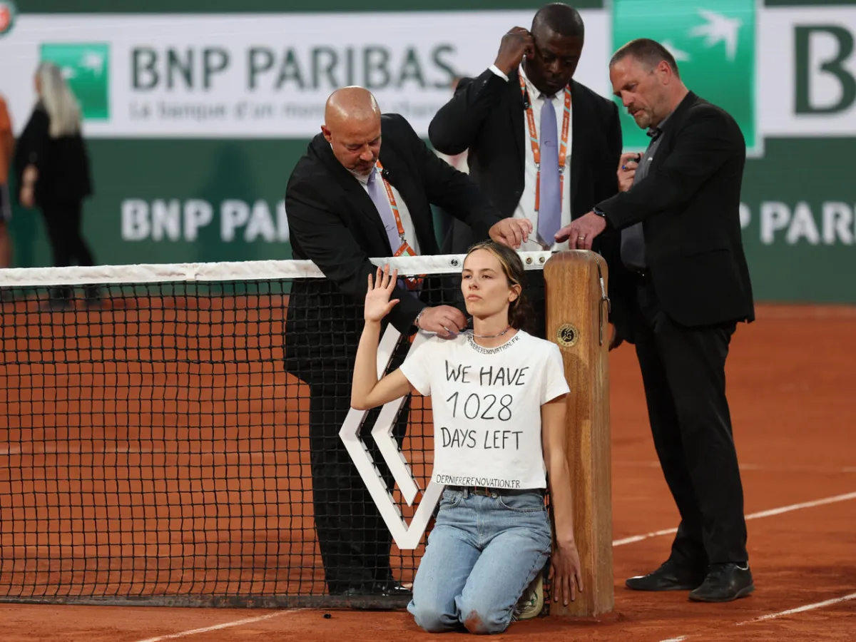 French Open Semi-final Interrupted as Protester Ties Herself to Net