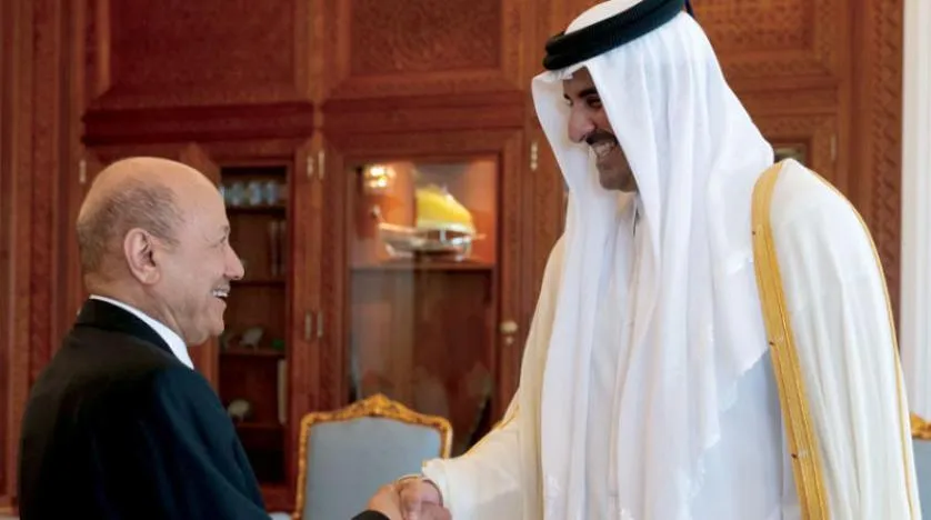 It noted that the Qatari Emir praised the distinguished historical relations between the two countries and peoples and underlined his country’s “keenness to support the existing political consensus within the Presidential Leadership Council, its economic and service reforms, and alleviate the suffering of the Yemeni people.”