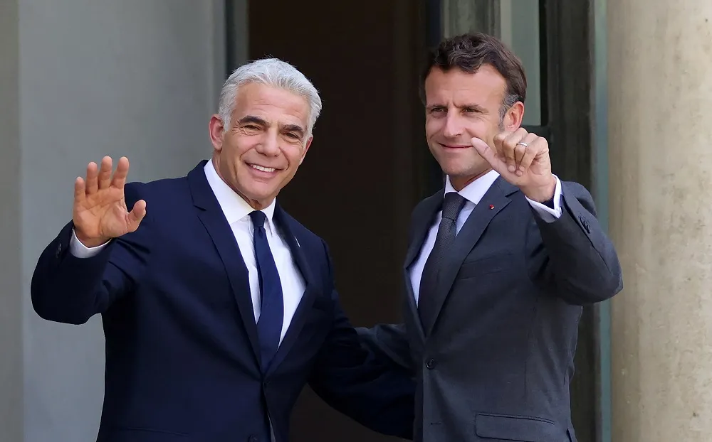Israel’s Lapid Meets Macron in Paris on First Trip as PM