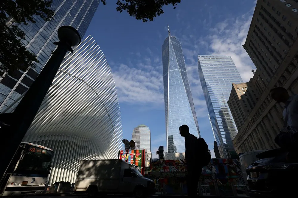 People walk by One World Trade Center after US President Joe Biden confirmed the death of al-Qaeda leader Ayman al-Zawahiri in Manhattan, New York City, US, August 2, 2022. (Reuters)