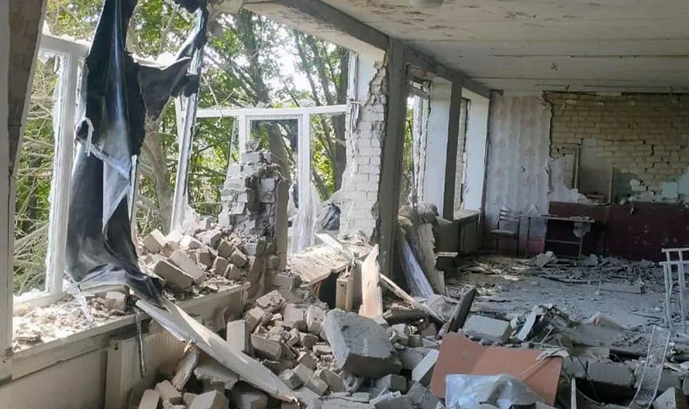 Images supplied by Ukrainian officials showed the rubble-strewn corridor of a school with its windows blown out and a residential building pierced by a rocket.