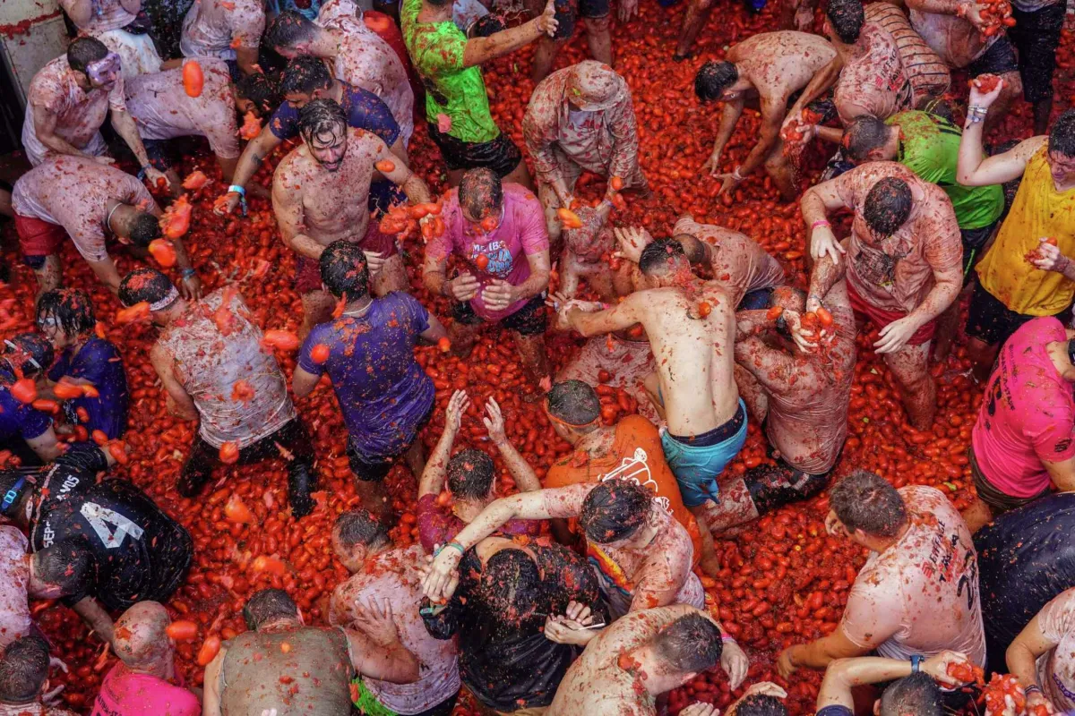 The event, held on the last Wednesday of August, was inspired by a food fight between local children in 1945 in the town, located in a tomato-producing region, The Associated Press reported.