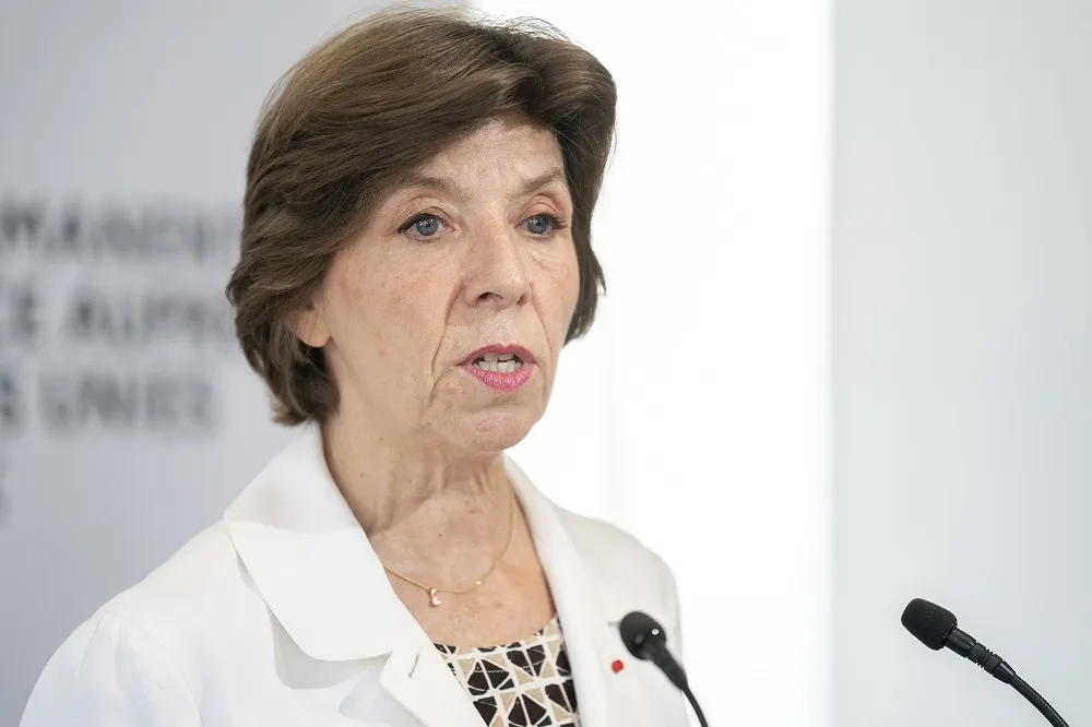 French Foreign Minister Catherine Colonna speaks at a press conference at the French Mission, Monday, Sept. 19, 2022, in New York. (AP)