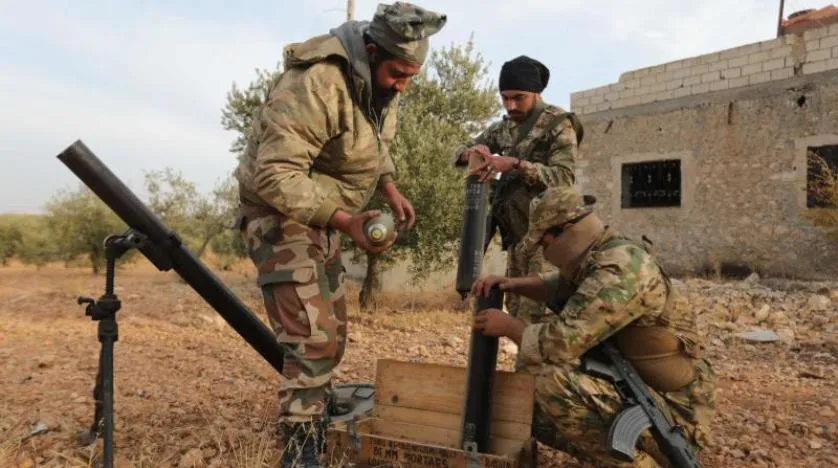 Pro-Turkish Syrian fighters prepare a mortar in Jarabulus, north of Aleppo. (AFP)