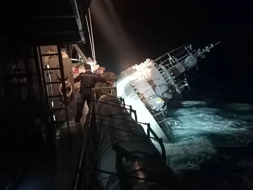 Another image shared by the navy showed the vessel as it was capsized, while a video showed a rescue boat alongside it in choppy waters.