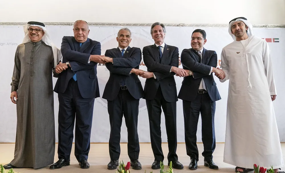 The meeting, with Israel's then centrist government, brought to the Israeli desert the foreign minister of Egypt, the first Arab state to make peace with Israel, and his counterparts from the United Arab Emirates, Bahrain and Morocco, which normalized relations in 2020 in the Abraham accords.