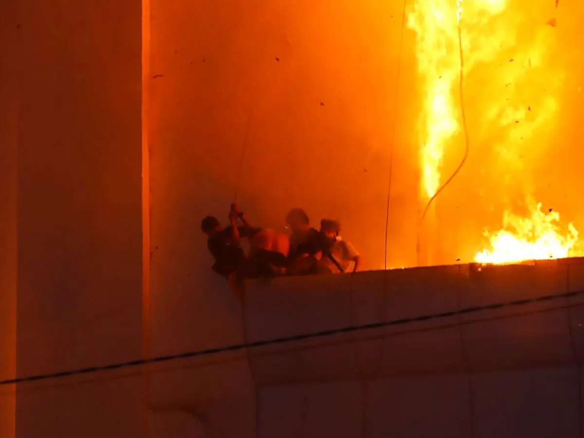 Images obtained by AFP showed the building consumed by flames, with firefighters struggling to contain the blaze and rescuers attempting to pluck people from a burning ledge.