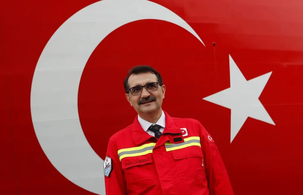 Türkiye's Energy Minister Fatih Donmez poses in front of the Turkish drilling vessel Yavuz at Dilovasi port in the western city of Kocaeli, Türkiye , June 20, 2019. REUTERS/Murad Sezer
