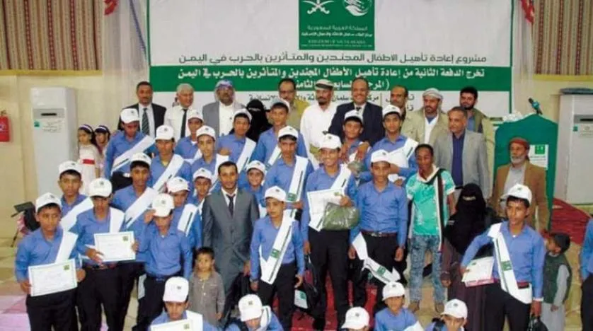 Yemeni children who were rehabilitated with Saudi support after the Houthis recruited them to fight (KSRelief)