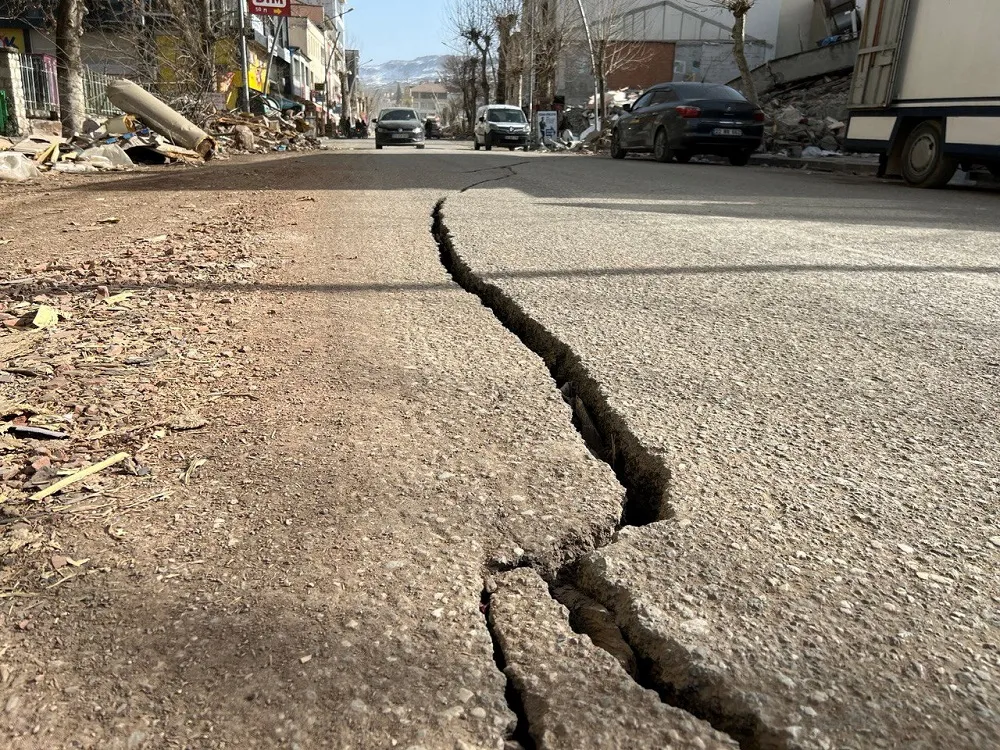 Cracks on a street is pictured in the aftermath of a deadly earthquake in Golbasi in Adiyaman province, Türkiye, March 1, 2023. (Reuters)
