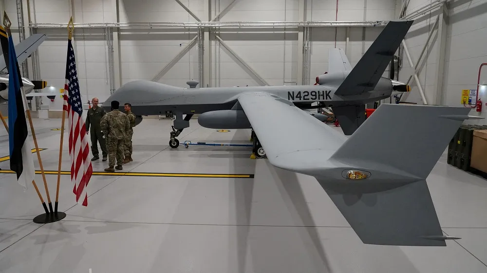 A US Air Force MQ-9 Reaper drone sits in a hanger at Amari Air Base, Estonia, July 1, 2020. (Reuters)