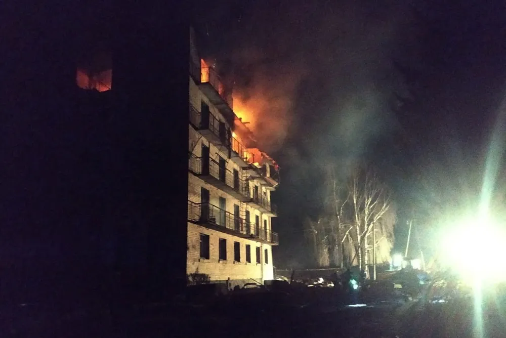 Videos showed the violent outcome of the attack: charred apartments, flames and smoke billowing out of several floors of the buildings, and piles of broken concrete and shards of glass on the ground.