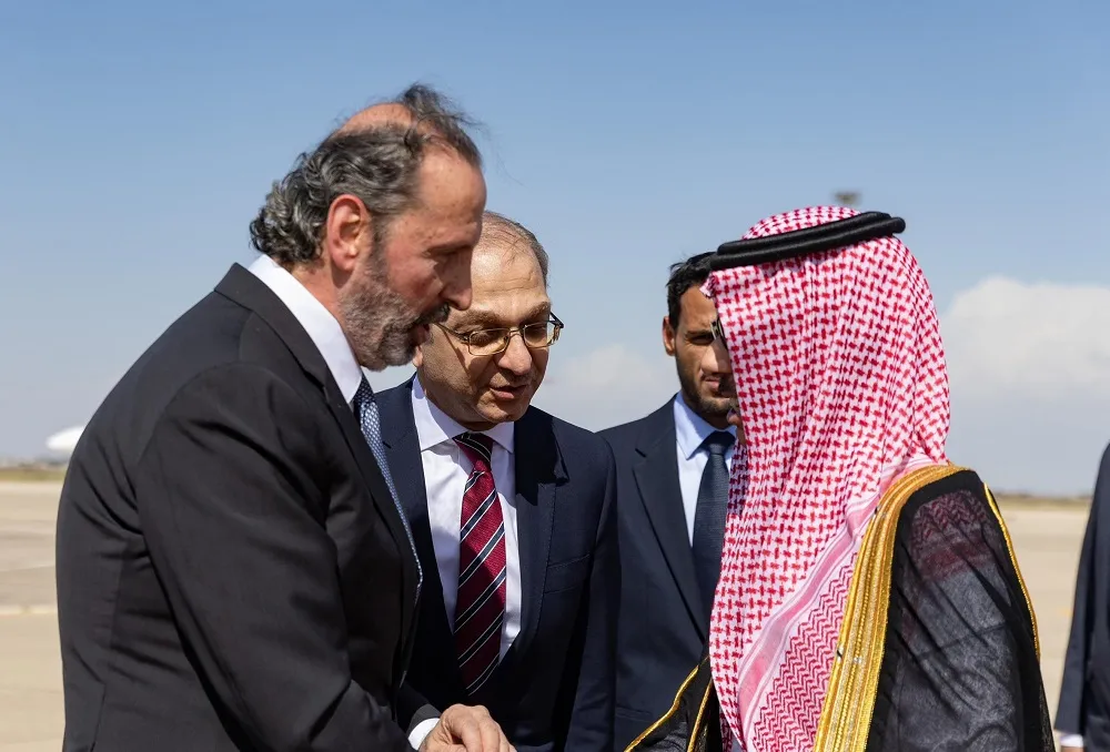 Prince Faisal was received at Damascus International Airport by Minister of Presidential Affairs Mansour Azzam.