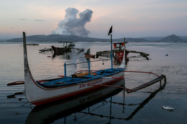 A fisherman catches fish as the Taal Volcano continuously errupts in Talisay, Batangas, Philippines, January 16, 2020. REUTERS/Eloisa Lopez