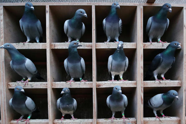 Pigeons are seen at Belgian auction house for racing pigeons Pipa in Knesselare, Belgium November 12, 2020. Picture taken November 12, 2020. REUTERS/Yves Herman