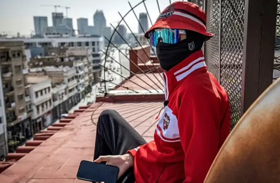 An ultra for Wydad AC football club in the old city of Casablanca, Morocco, where fans have been showing support for Palestinians - AFP