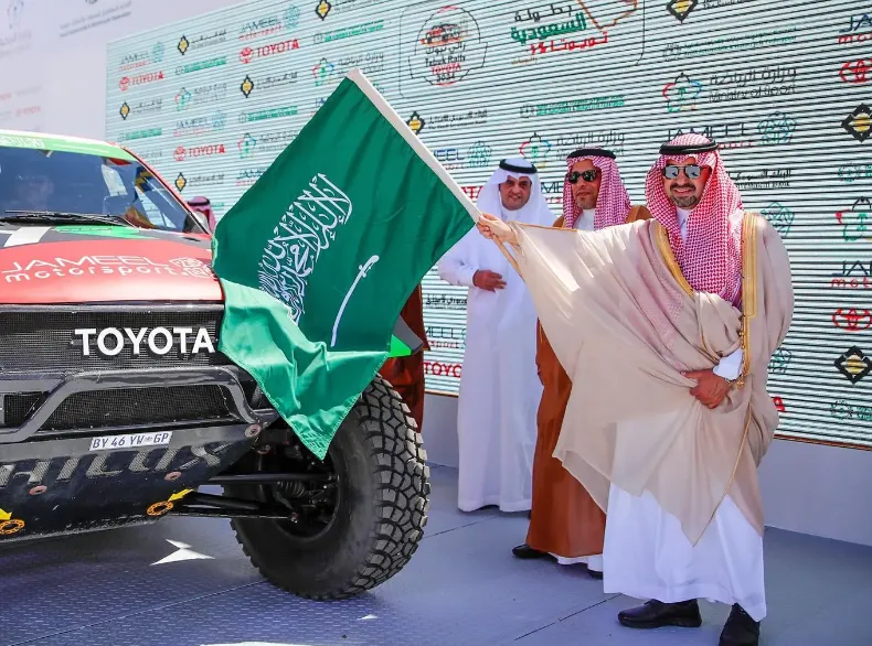 The Deputy Governor of the Tabuk Region, Prince Khalid bin Saud bin Abdullah bin Faisal bin Abdulaziz, on Thursday launched the start signal for the thrilling Tabuk Toyota Rally 2024 with 90 top global racers.