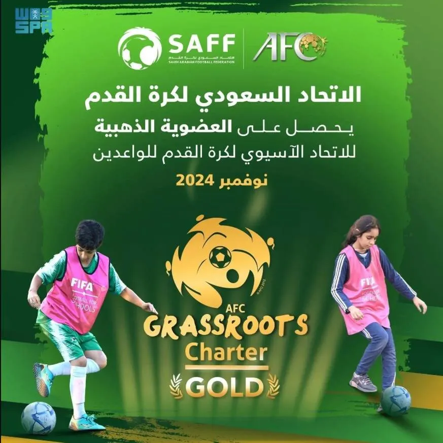 The Saudi Arabian Football Federation (SAFF) has earned the golden membership in the Grassroots Charter of the Asian Football Confederation (AFC), reaffirming its dedication to developing youth categories and adhering to the highest Asian standards.