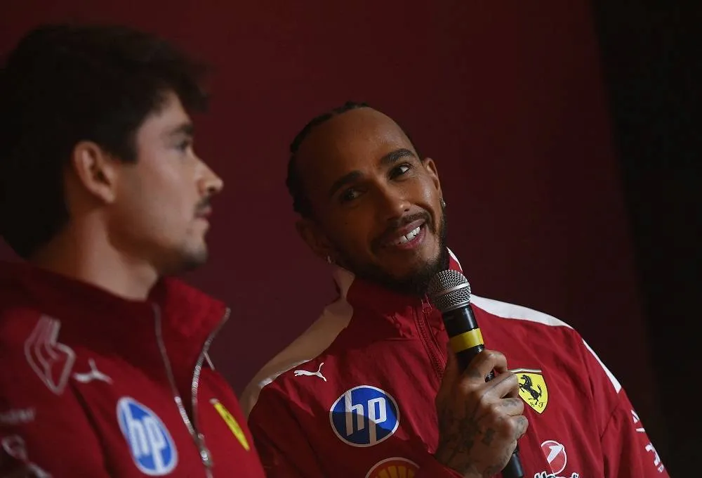 Formula One F1 - Scuderia Ferrari and Puma celebrate 20 Years of Collaboration - Maranello, Italy - March 4, 2025 Ferrari drivers Charles Leclerc and Lewis Hamilton during the event to celebrate Scuderia Ferrari and Puma's 20 years of collaboration. (Reuters)