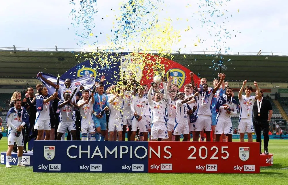 Leeds United edged out Burnley to win the second-tier Championship title on goal difference after both teams finished the season with 100 points as Luton Town suffered a second straight relegation on Saturday.