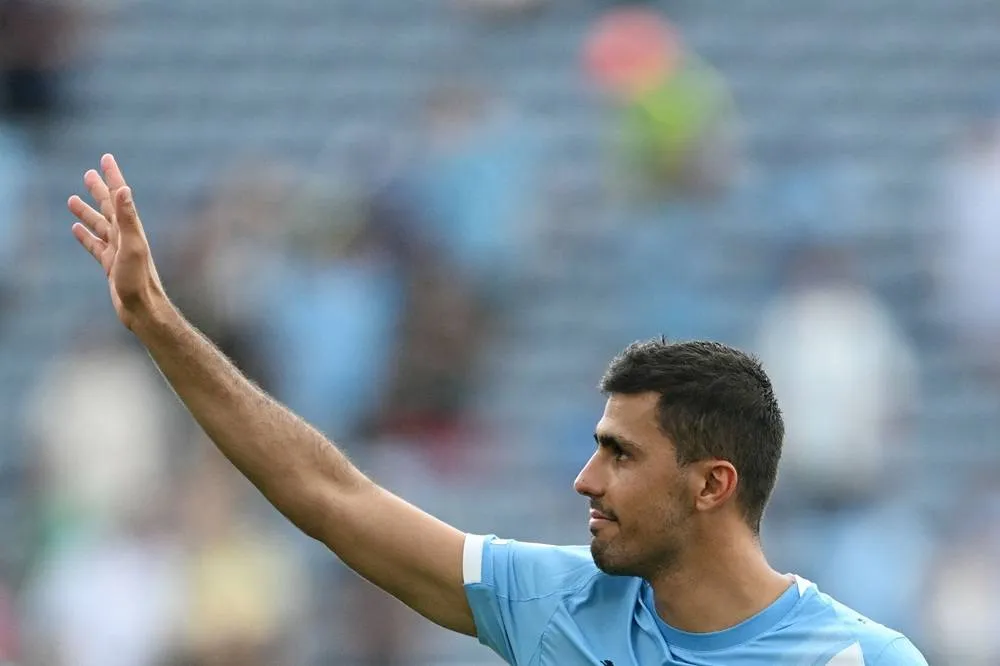 Manchester City's Spanish midfielder #16 Rodri greets the fans after winning the FIFA Club World Cup 2025 Group D football match between Italy's Juventus and England's Manchester City at the Camping World stadium in Orlando on June 26, 2025. (AFP)