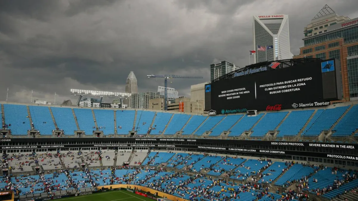 Play is halted at the Bank of America Stadium in Charlotte in Chelsea's Club World Cup game against Benfica. ANGELA WEISS / AFP