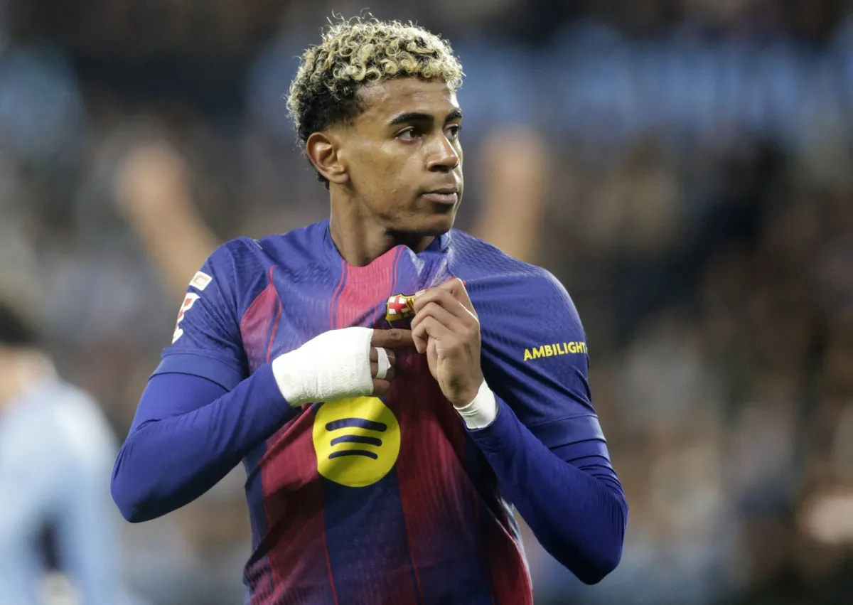 Soccer Football - LaLiga - Celta Vigo v FC Barcelona - Estadio de Balaidos, Vigo, Spain - November 9, 2025 FC Barcelona's Lamine Yamal celebrates scoring their third goal. (Reuters)
