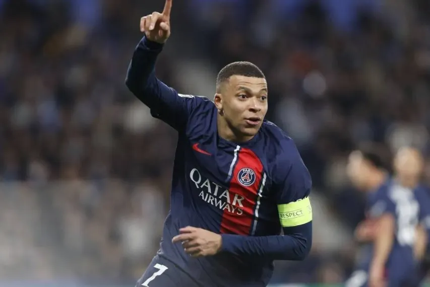 Kylian Mbappé of PSG celebrates after scoring the 0-2 goal during the UEFA Champions League Round of 16, 2nd leg soccer match between Real Sociedad and Paris Saint-Germain, in San Sebastian, Spain, 05 March 2024. (EPA)