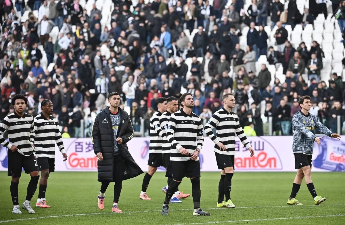 Juventus' players leave the pitch at the end of the Italian Serie A football match between Juventus and Como at the Allianz stadium in Turin on February 21, 2026. (AFP)