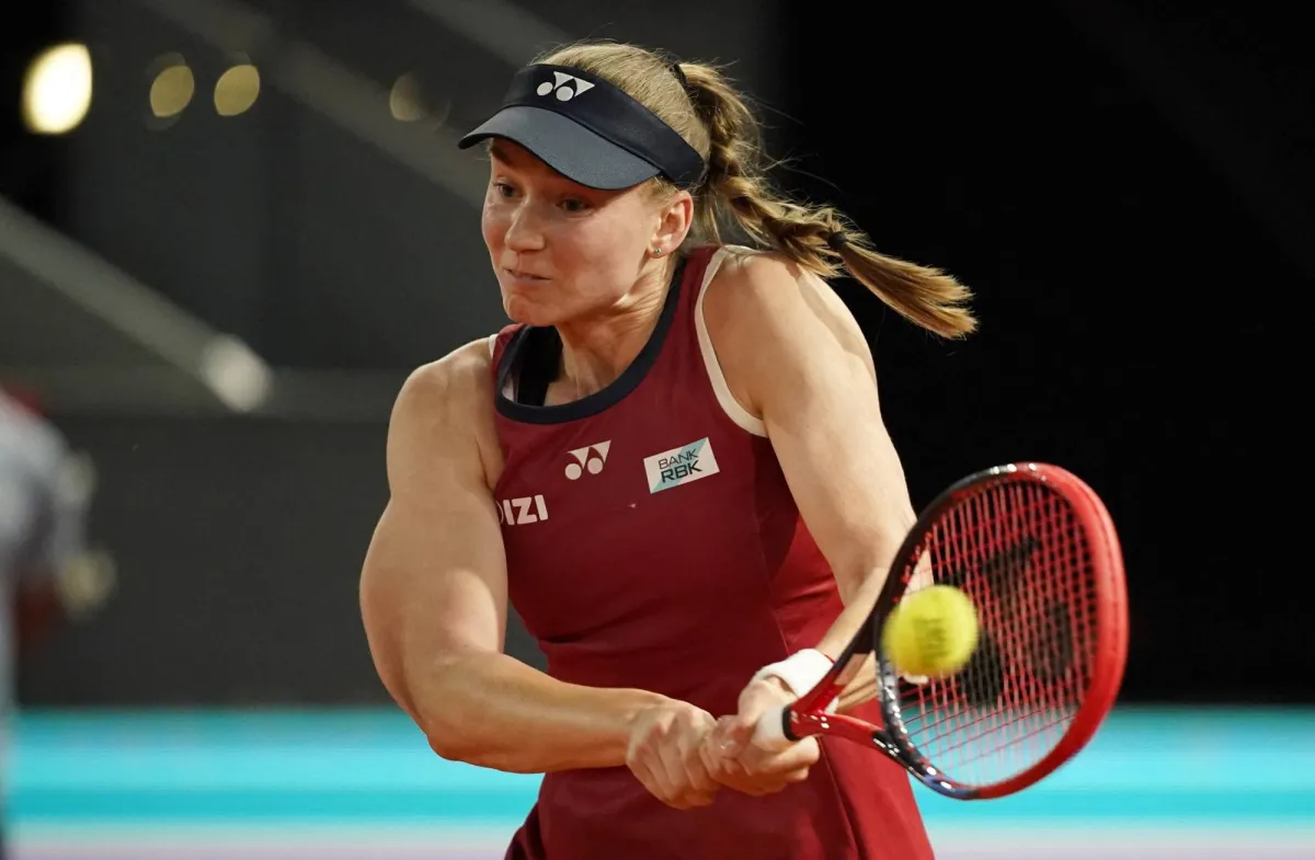Tennis - Madrid Open - Park Manzanares, Madrid, Spain - April 26, 2026 Kazakhstan's Elena Rybakina in action during her round of 32 match against China's Qinwen Zheng. (Reuters)