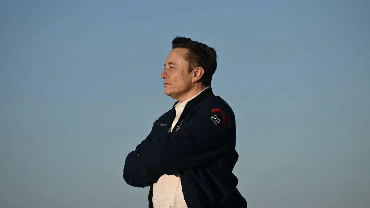 Elon Musk steps off Air Force One upon arrival at Morristown Municipal Airport in Morristown, New Jersey, US, March 22, 2025. (AFP)
